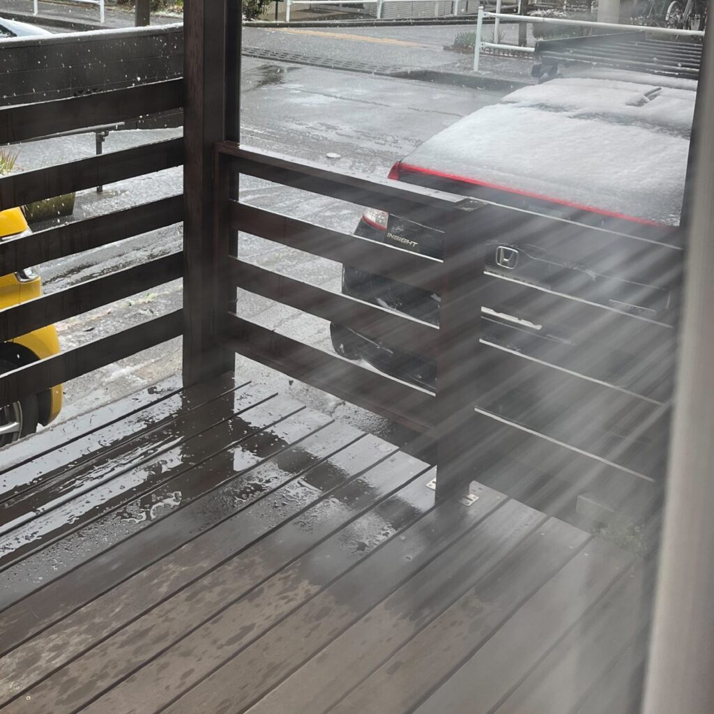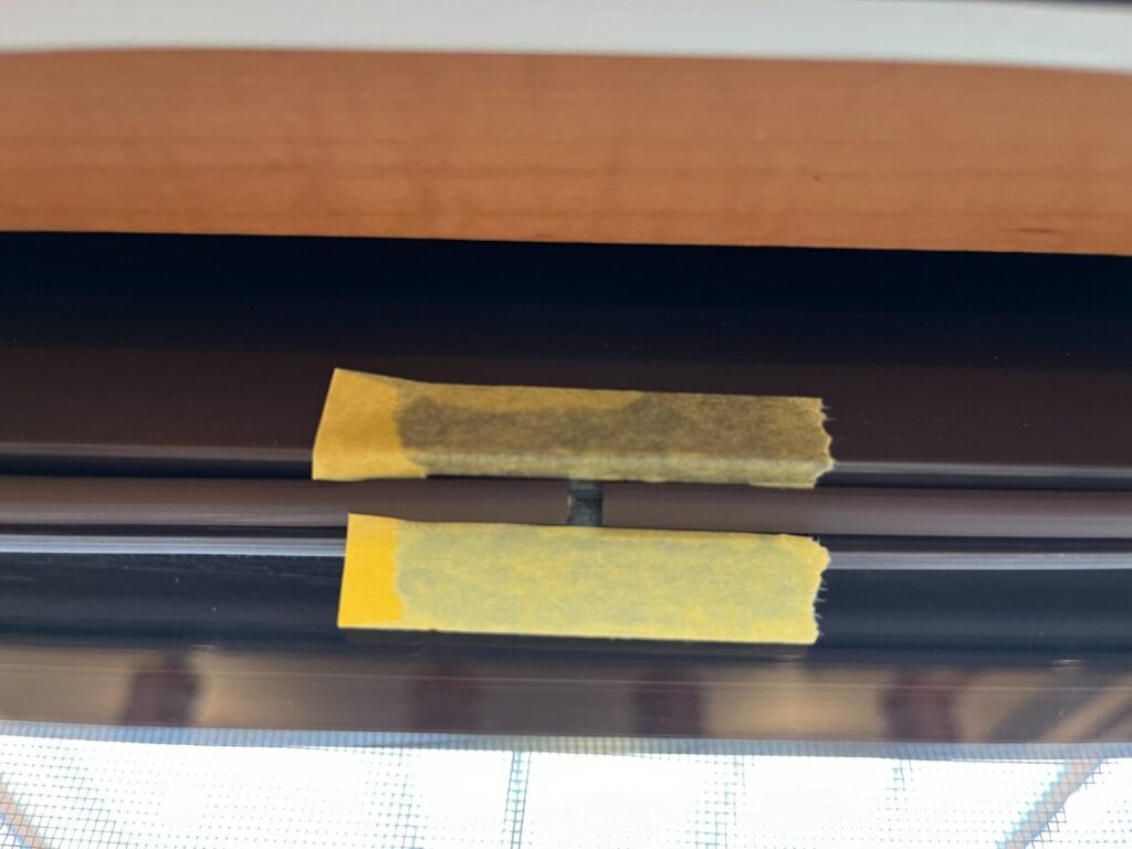 部屋と屋外の寒暖差によってガラスとアクリルの間の空気が膨張するため、引き違い窓を開けた際にアクリル板が既存の窓に接触して擦れ跡がついてしまいました。通常のペアガラスはこの膨張を考慮した窓枠の厚みになっていますが、今回の簡易的な方法ではその設計ができていなかったことが原因です。