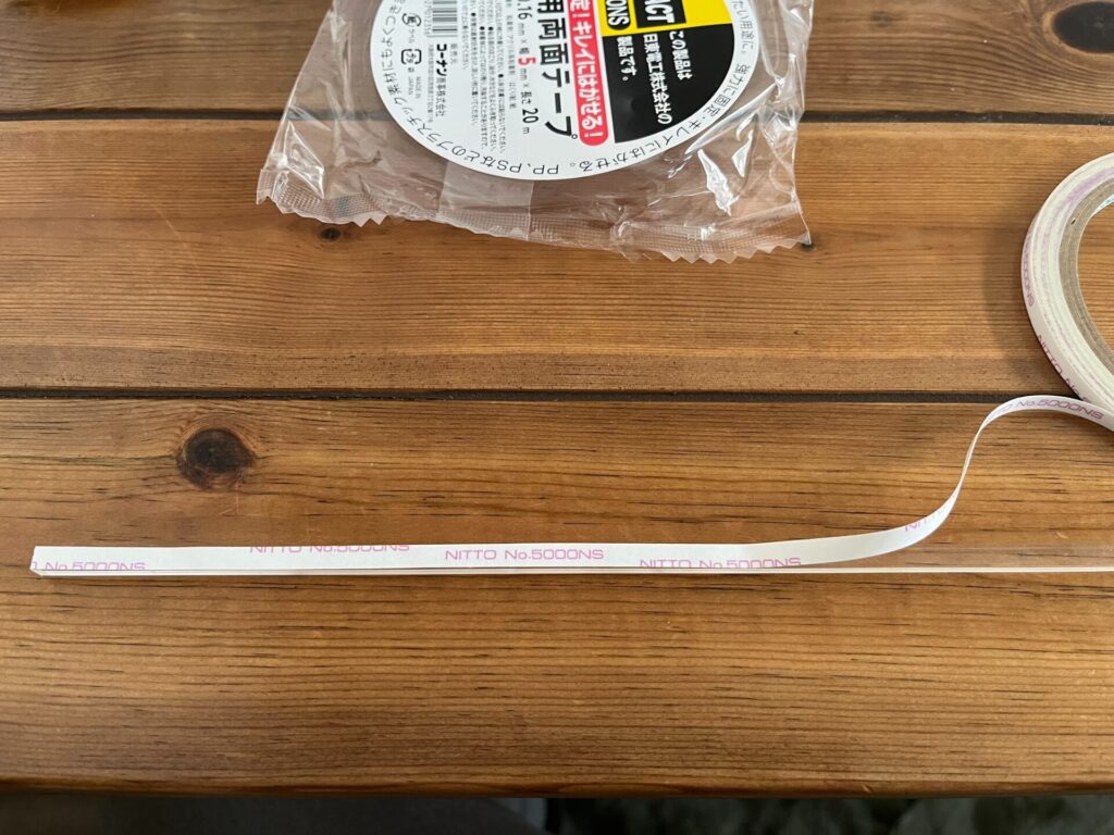 アクリル角棒の2面(ガラスに貼る面とアクリル板に貼る面)に5mm幅の両面テープを貼ります。