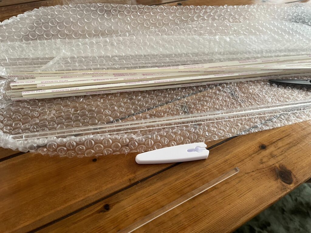 ガラスとアクリル板の間に挟んで空気層を確保するために使用します。今回は32本使用しました。両面テープを貼る面が2面あるため、作業量はかなり多くなります。