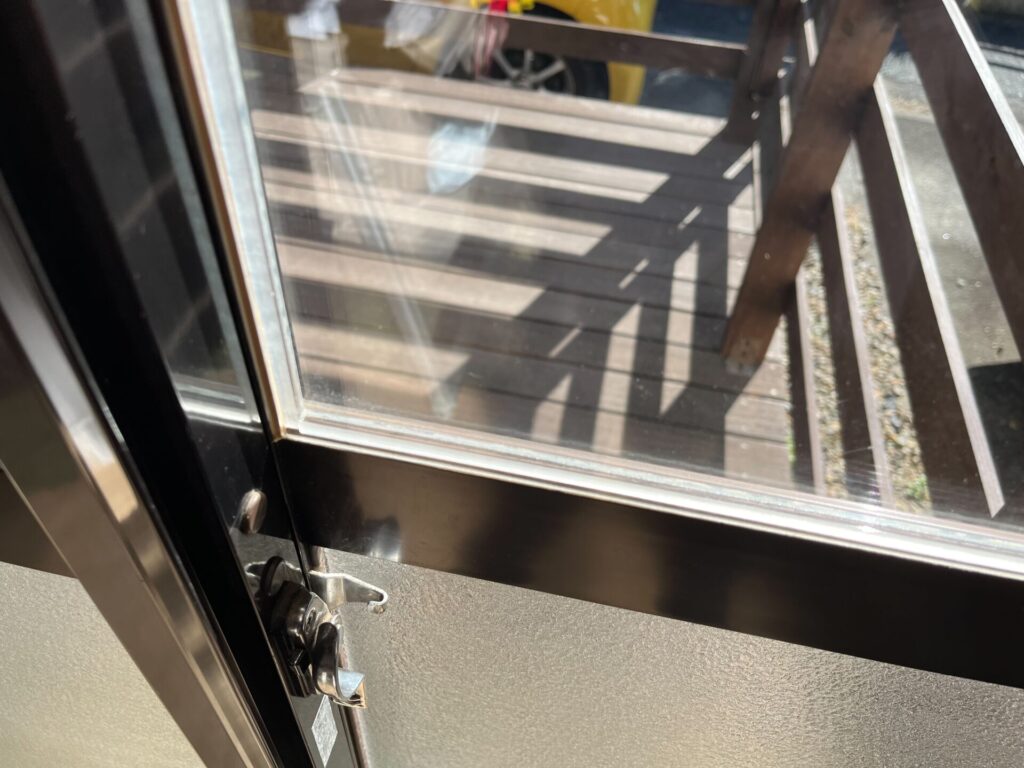 今回はクレセント錠の受け部分がアクリル板に干渉してしまうことが判明したため、その部分を切り欠き加工しました。アクリル板は専用カッターや丸鋸でカットできます。