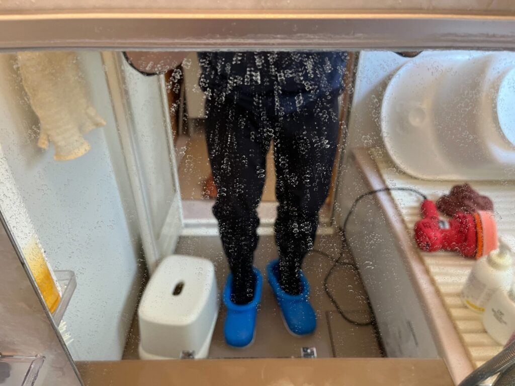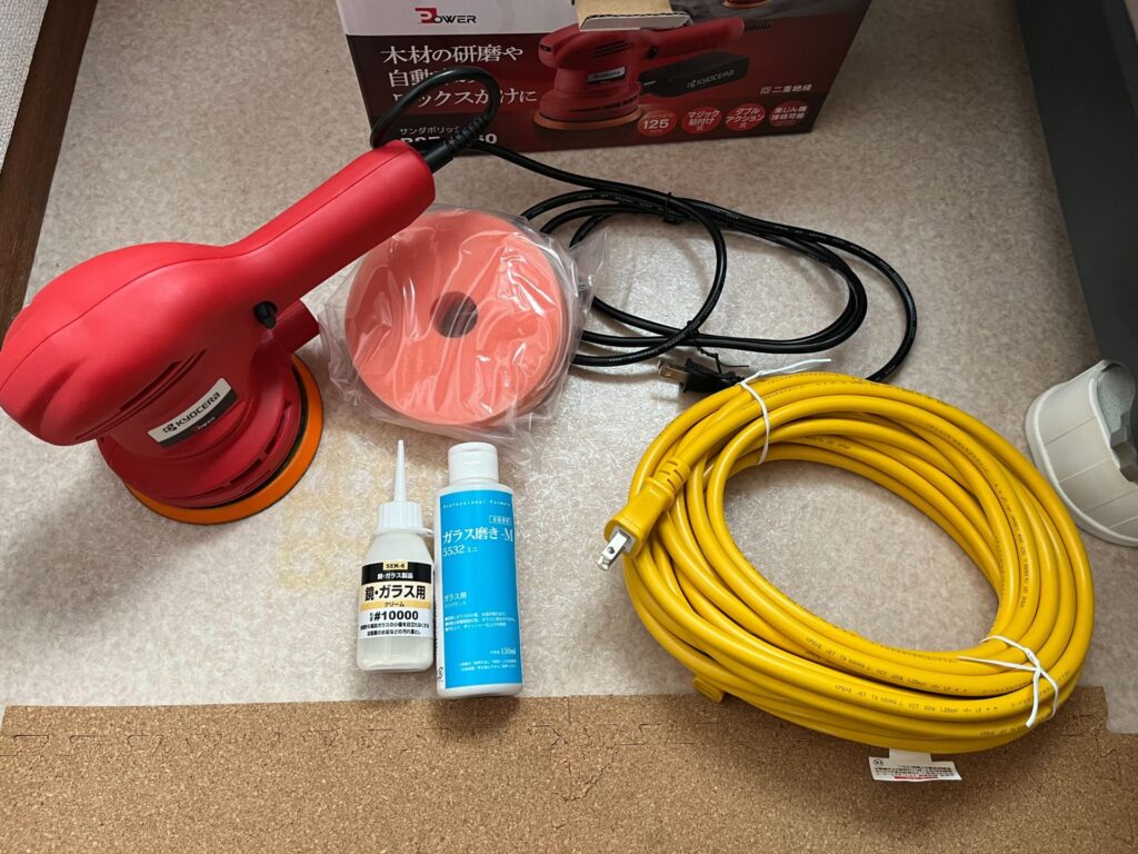 市販のウロコ取りシートやクエン酸を試しても表面が少し改善する程度で、根本的には取れず。思い切ってポリッシャーとコンパウンドを使った本格的な方法を試してみることにしました。