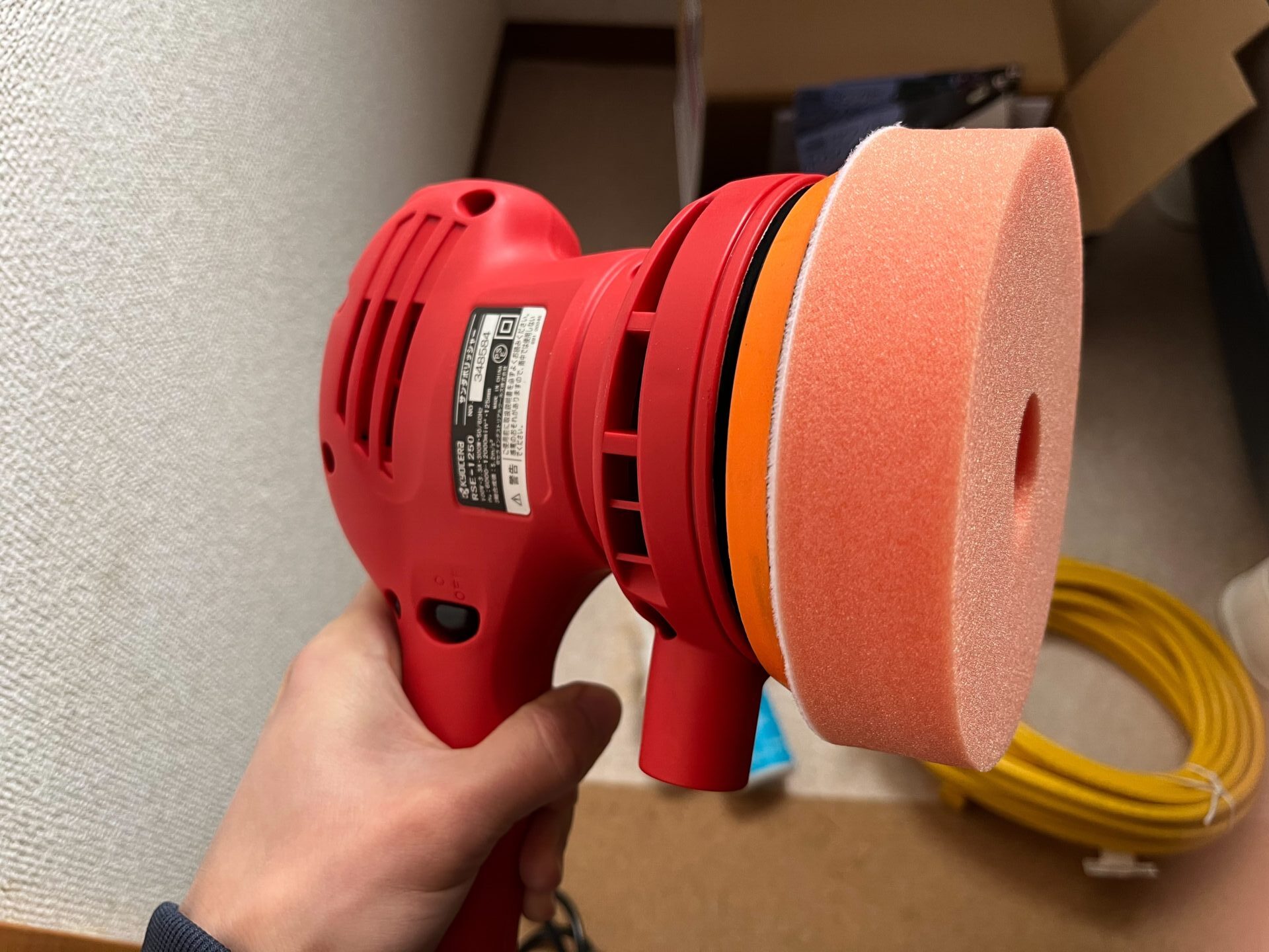 電動ポリッシャーです。手で磨くよりも均一に力をかけられるため、広い面積を効率よく研磨できます。アタッチメントにスポンジパッドを取り付けてコンパウンドと組み合わせて使用します。