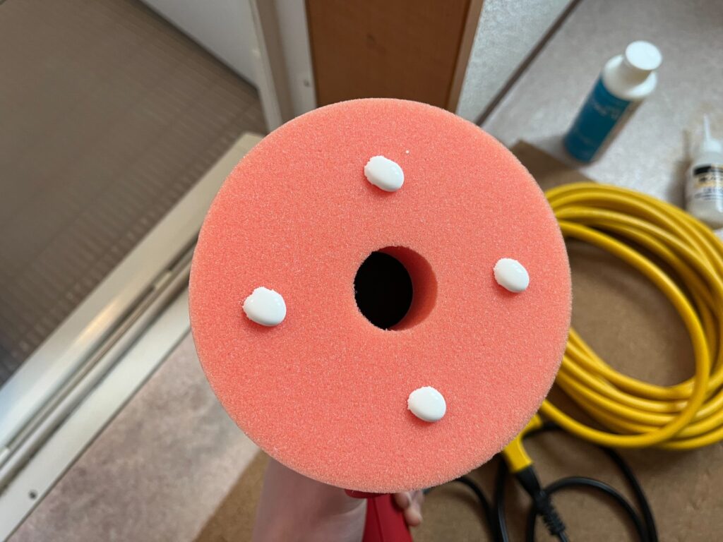 ② ポリッシャーにスポンジパッドをセットしてコンパウンドを付ける