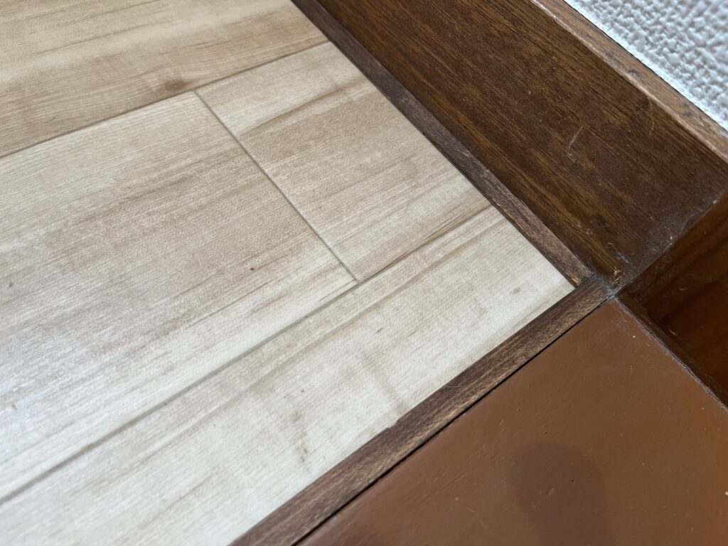 今回は際がうまくいかずにギザギザになってしまったため、薄い木の板で隠す方法で対処しました。きれいに貼るコツが見つかったら改めて記事にしたいと思います。